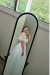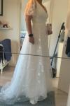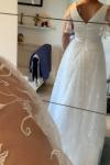 レビュー: ウェディングドレス VネックラインAライン ウェディングドレス半袖背中の開いたブライダルドレス ホワイトレース