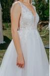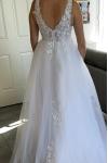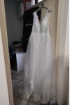 personalmente ho fatto fare solo una piccola modifica alla sarta, ho molto seno (una VI) e non mi piaceva si vedesse lonaoacco sotto il tulle trasparente, ho fatto aggiungere del raso bianco.