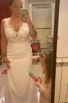 Très belle robe de mariée. Elle est vraiment très belle. La dentelle n'est pas vraiment identique conne sur la photo mais elle est magnifique. J'ai hâte de pouvoir la porter le jour j. Toute seule je ne pouvais pas fermer le dos ni faire des photos parfaites.