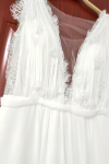 レビュー: ホワイトシンプルなウェディングドレスAラインコートトレインVネックナチュラルウエストラインノースリーブシフォンレースブライダルドレス