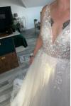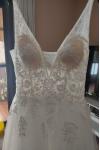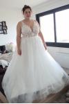 Magnifique aussi belle en vrai qu’en photo quelques retouches au brettelles car bien trop grande et une dans le dos mais sinon elle est sublime tulle pailleter et perle au niveau des bretelles juste sublime elle est parfaite
