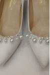 レビュー: 女性用ミッドローヒール エレガント ポインテッドトゥ 子猫ヒール スリッポン かわいいパール ホワイト ウェディングパンプス