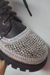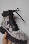 レビュー: レディース アンクルブーツ ブラック ラインストーン ブーティ PUレザー ラウンドトゥ チャンキーヒール
