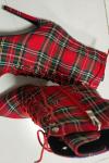 レビュー: 女性アンクルブーツレッドキャンバスポインテッドトゥスティレットヒールスカイハイ千鳥格子ブーティー