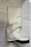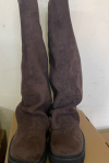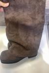 レビュー: レディース スエード フラットブーツ ラウンドトゥ ルーシュ フォールドオーバー ニーハイブーツ