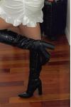 レビュー: レディース クロコ型押しチャンキーヒール ニーハイブーツ