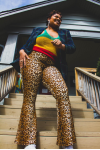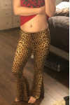 レビュー: 女性フレアパンツヒョウプリント柄コットンハイライズウエストパンツ