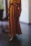 レビュー: 女性のロングドレスオレンジイエローターンダウンカラー長袖ポリエステルマキシドレス