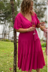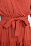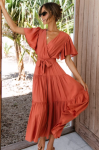 レビュー: 女性マキシドレス半袖ラベンダーVネックレースアップレイヤードポリエステルサマーロングドレス