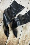 レビュー: ニーブーツプラスサイズの女性スティレットヒールPUレザーブラックサイハイブーツ
