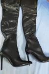 レビュー: 女性オーバー ニー ブーツ プラス サイズ スティレット ヒール PU レザー ブラック サイハイ ブーツ