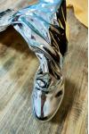 レビュー: 女性のセクシーなブーツオープントゥジッパースパンコールスティレットヒールレイブクラブシルバーサイハイブーツ膝上ブーツ