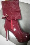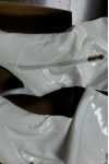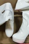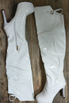 レビュー: 女性サイハイブーツハイヒール膝上ホワイトパテントアッパーブライトレザーラウンドタイトゥブーツ