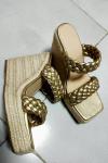 レビュー: 女性ウェッジ ヒール ミュール スリップオン スクエアトゥ PU レザー ライト ブロンド ウェッジ ボヘミアン ウェディング サンダル