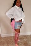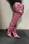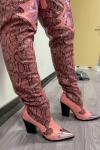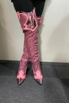 レビュー: オーバー ザ ニー ブーツ ウエスタン ブーツ ポインテッドトゥ チャンキー ヒール サイハイ ブーツ スネーク パターン レザー 女性