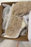 レディース アンクルブーツ フェイクファー ポインテッドトゥ ハイヒール ブーティ