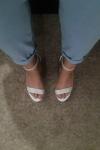 結婚式に履いていきました!ヒールの高さがとても快適で、楽に歩くことができました。7時間ほど履いていましたが、ほとんど痛みはありませんでした!本当にかわいい靴です!