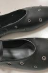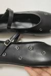 レディース バレエフラット ブラック ラウンドトゥ カットアウト バックル ストラップ フラットシューズ