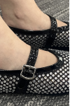 レビュー: レディース バレエ フラット メッシュ ラインストーン ラウンドトゥ メアリー ジェーン バレリーナ フラット プロム シューズ