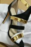 レビュー: ブラック サンダルシューズ 2026 女性用 オープントゥ スティレット ツートンサンダル