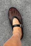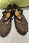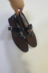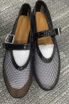 レビュー: レディース ブラック バレエ フラット ラウンド トゥ フィッシュネット メリージェーン バレリーナ フラット