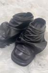 レディース ブラック ミュール スクエアトゥ ルーシュ バックレス ローファー