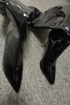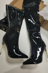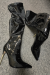 レビュー: 女性の黒の太ももハイヒール ブーツ ブライト レザー