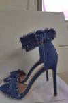 レビュー: レディースヒールサンダルライトスカイブルースティレットヒールオープントゥキャンバスアッパーデイリーカジュアル足首ストラップヒール