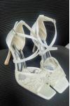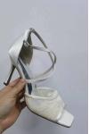 女性のブライダルシューズ刺繍サテンオープントゥスチレットヒールブライダルシューズ