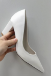 レビュー: 女性のブライダルシューズサテンポインテッドトゥチャンキーヒールブライダルシューズ