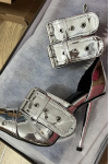 レディース バックル ハイヒール ポインテッドトゥ アンクルストラップ パンプス
