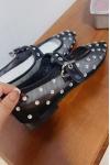 レディース バックル ラウンドトゥ ポリエステル バレエフラット