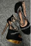 レビュー: 女性のためのセクシーなサンダルブラックマイクロスエードアッパーのぞき見つま先スティレットヒールアンクルストラップヒールサンダル