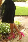 I love the hot pink color and block heel. They do need to be broken in before being considered comfortable but just the ankle wrap part. I ordered my normal size and it fit TTS.