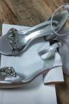 レビュー: ウェディングシューズホワイトサテンラインストーンポインテッドトゥアンクルストラップチャンキーヒールブライダルシューズ
