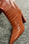 レビュー: レディース クロコ プリント チャンキーヒール ニーハイ ブーツ
