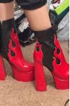 レビュー: 女性の炎ツートーン アンクル ブーツ プラットフォーム チャンキー ヒール