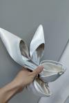 レビュー: 結婚式の靴サテンシャンパン先のとがったつま先ラインストーンブライダルシューズ