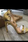 レビュー: ゴールドドレスシューズ女性オープントゥアンクルストラップハイヒールサンダル