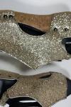 ウィメンズ ゴールド グリッター プラットフォーム ウェッジ サンダル