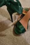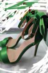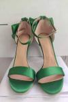 レビュー: レディース グリーン サテン アンクル ストラップ ボウ ヒール スティレット ヒール イブニング サンダル プロム シューズ