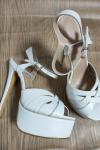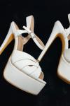 レビュー: 女性用ヒール サンダル ホワイト ピープトウ プラットフォーム スティレット ヒール サンダル パーティー シューズ