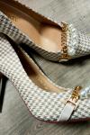 女性用 ハイヒール チェック柄 パール パンプス シック ポインテッドトゥ スティレットヒール ポリエステル