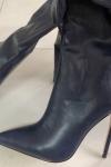 レビュー: レディース ニーハイブーツ ネイビーブルー ポインテッドトゥ PUレザー スティレットヒールブーツ