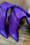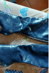 レビュー: レディース ニーハイブーツ ネイビーブルー ポインテッドトゥ PUレザー スティレットヒールブーツ