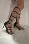 レビュー: レディース ニーハイ グラディエーター サンダル ブラック オープントゥ バックルディテール ストラップ ハイヒール サンダル シューズ