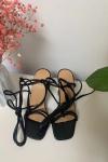 レビュー: レディースブラックレースアップサンダルオープントゥハイヒールストラップサンダル