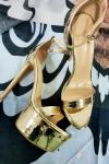 レビュー: レディース メタリック プラットフォーム アンクル ストラップ ホームカミング サンダル プロム ヒール ゴールド