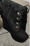 レビュー: レディース ミッドカーフブーツ マイクロスエード アッパー ラウンドトゥ ウェッジヒール ブーツ