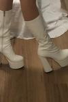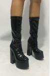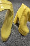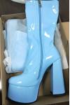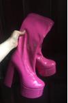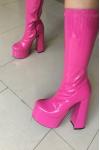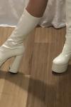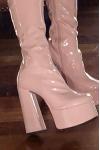 レビュー: レディース プラットフォーム チャンキーヒール ゴーゴーブーツ パテントブライトレザー ハイヒールブーツ